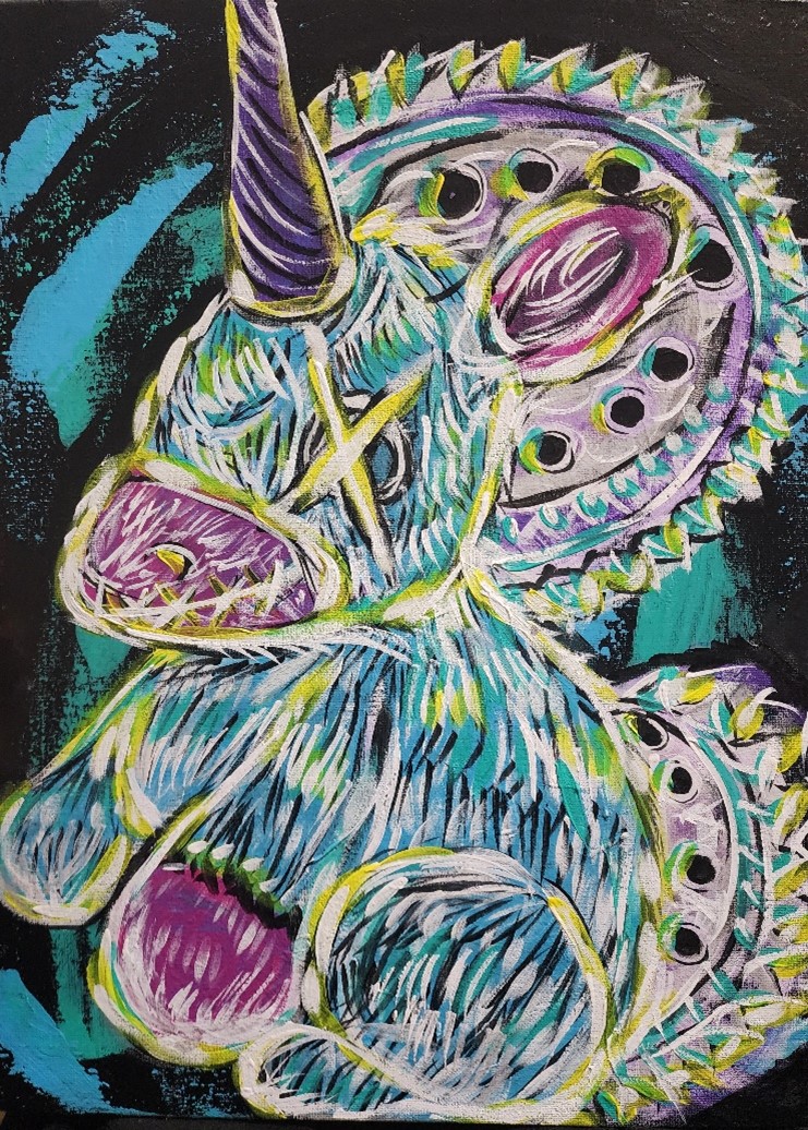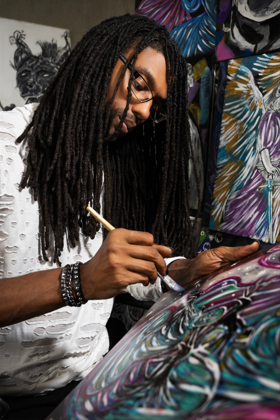 After surviving a traumatic brain injury, Angelo transformed challenge into purpose. His paintings and NFTs are vibrant portals that explore ancestry, spirituality, and renewal – inviting viewers to see beyond the surface and connect with the soul of creation.